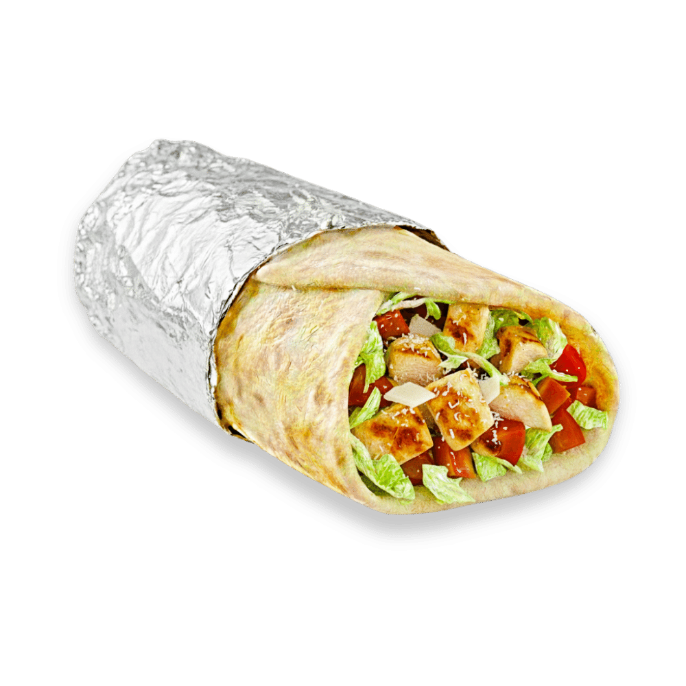 Тортилья, соус чесночный, курица, томат, сыр пармезан, салат айсберг.