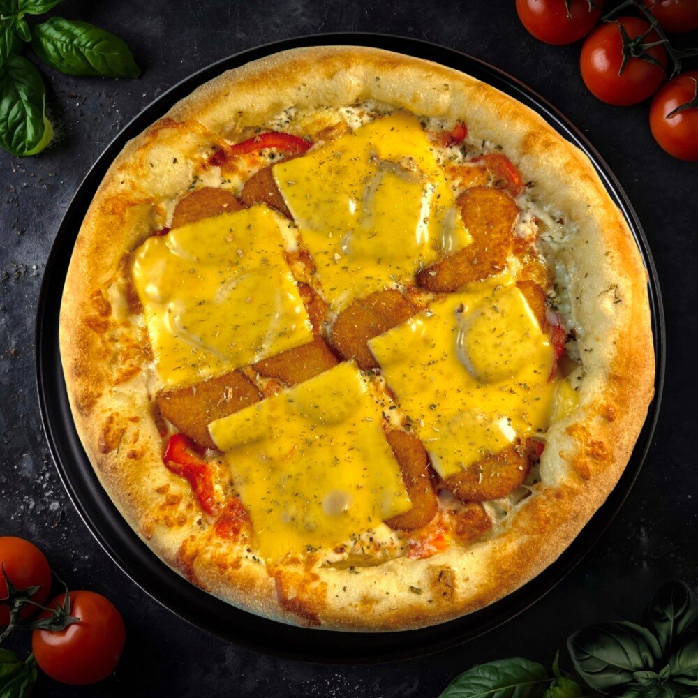 Соус "Ранч", сыр моцарелла, болгарский перец, наггетсы куриные, сыр чеддер.